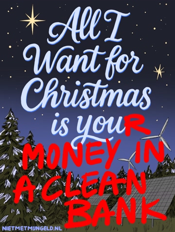 Een kerstkaartje voor jou! 💌 Voor mij geen grote cadeaus dit jaar. Ik heb maar één wens: een leefbare aarde voor ons allemaal ✨ Dat kan alleen als ook banken hun verantwoordelijkheid nemen en kiezen voor groen en rechtvaardig klimaatbeleid. ING doet dat nog niet. Daarom heb ik het ultimatum van Milieudefensie aan ING ondertekend. De bank heeft één jaar om het beter te doen. Zo niet, dan stappen we samen met tienduizenden anderen over naar een andere bank. Doe je met me mee? Teken het ultimatum (ook als je geen ING-klant bent): https://bit.ly/NIETMETMIJNGELD-fb Fijne feestdagen 💚 #NietMetMijnGeld