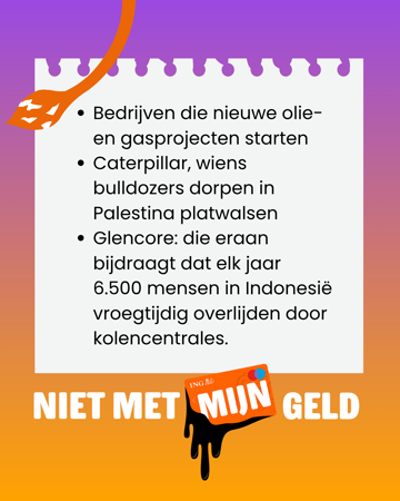 Zonder dat jij het weet steekt ING jouw spaargeld in bedrijven die vol inzetten op fossiele energie én mensenrechten schenden.