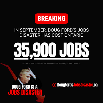 #BREAKING: Statistics Canada's Labour Market Report shows Ontario lost 35,900 jobs in September.