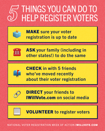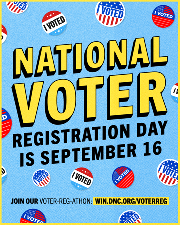 National Voter Registration Day is Tuesday, September 16th and the DNC is launching a National Voter Registration Week of Action! Share the content below across your digital networks and spread the word.