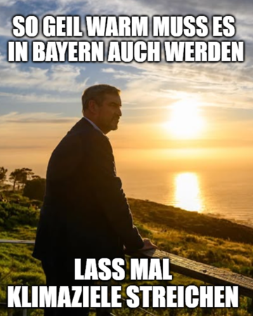 Hast du das mitbekommen? Söder verschiebt Bayerns Klimaziele um weitere 5 Jahre! Dabei warnen schon jetzt Wissenschaftler*innen aus allen Bereichen vor der rasanten Erhitzung.🔥 Die 3-Grad-Grenze könnten wir bereits 2050 knacken. Das bedeutet: mehr Dürren, mehr Waldbrände, mehr Schäden, mehr Folgen für unsere Gesundheit – und das nur, weil Söder grad keine Lust auf Klima hat.😔