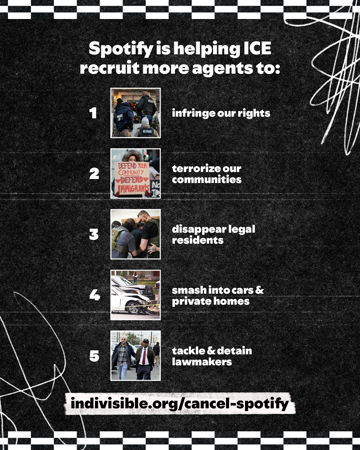 Share these posts on your favorite social platforms to encourage more people to cancel Spotify until the platform stops running ICE recruitment ads.